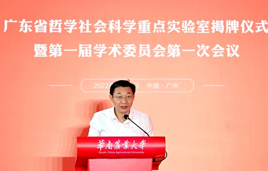 张知干在致辞中指出,近年来,省社科联联合部分高校在全国率先创建哲学社会科学重点实验室,旨在通过多层面、宽领域、大纵深推进学科交叉融合,革新人文社科研究的路径、方法、范式,加快建构中国自主的知识体系。他强调,华农矢志强农兴农百余载,有能力有条件在加快构建中国特色哲学社会科学进程中书写更加厚重的华农篇章。一是要坚定不移坚持以习近平新时代中国特色社会主义思想为指导。要自觉以回答中国之问、世界之问、人民之问、时代之问为学术己任,以彰显中国之路、中国之治、中国之理为思想追求,努力展现当代中国哲学社会科学工作者的时代风采。要忠实践行以人民为中心的研究导向,努力多出经得起实践、人民和历史检验的研究成果。二是要矢志不渝打造学术赋能乡村振兴的创新高地。要善于运用习近平总书记教给我们的世界观和方法论来观察大局大势、思考前沿问题、凝练研究方向。要始终从传承弘扬党的百年奋斗重大历史经验和贯彻落实国策的战略高度来认识、谋划、推动创新,毫不动摇坚持创新引领学术发展根本道路。要大胆创新实验室管理模式和运行机制,建构创新体系,打破学术壁垒,全方位提升学术创新的能力和水平。三是要全力以赴抢占农业农村现代化话语权。要积极构建具有深刻思想性和高度说服力的中国式农业农村现代化话语体系,切实把我国农业农村现代化的定义权、解释权牢牢掌握在中国学人手中。要娴熟运用学术方式解读农业农村现代化故事及其背后的思想力量和精神力量,生动诠释中国式现代化新道路和人类文明新形态,向世界分享凝聚着中国智慧、蕴含着中国体验的好理念、好方案。