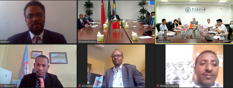 5月10日下午,在埃塞俄比亚驻华大使馆的推荐协调下,我校与埃塞俄比亚德卜勒塔博尔大学(Debre Tabor University)就两校建立校际农业教育科技合作关系召开首次视频会议。埃塞俄比亚驻华大使特肖梅·托加(Teshome Toga)、我校副校长仇荣亮出席会议并致辞。