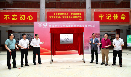调研过程中,王斌伟出席了华南农业大学葛根研究院成立揭牌仪式,并参观了食品学院科研合作成果实物展和相关科研平台实验室。葛根研究院由我校与校友企业广州崧源农业科技有限公司共同创建,以葛根功能食品开发、种苗育种、葛根产业配套延伸与设备开发为研究核心,集研究、教学与成果转化为一体,目前主要依托食品学院科研团队开展运营。