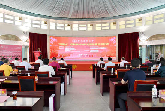 5月18日上午,我校在红满堂举行“巨美人”荔枝新品种推介暨预售首发仪式。广东省农业农村厅总经济师罗一心,我校党委书记王斌伟、副校长咸春龙等出席仪式。
