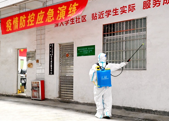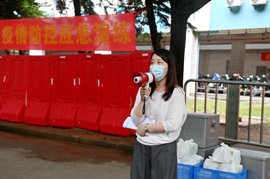 “学校接到属地通知,新冠肺炎核酸检测泰山学生宿舍区有一混采管(20人)结果异常,校园进入应急状态,严格实行‘网格化’提级管理!”5月25日上午,我校开展新冠肺炎疫情应急演练,模拟学校主要负责人授权校党委副书记邓国安统筹指挥应急处置,启动应急预案、人员信息排查、校园封控管理、流调排查管控、转运密接人员、楼宇环境消杀、餐饮服务保障七个关键环节,以练为战、以战促训,提升校园疫情防控应急处突能力。