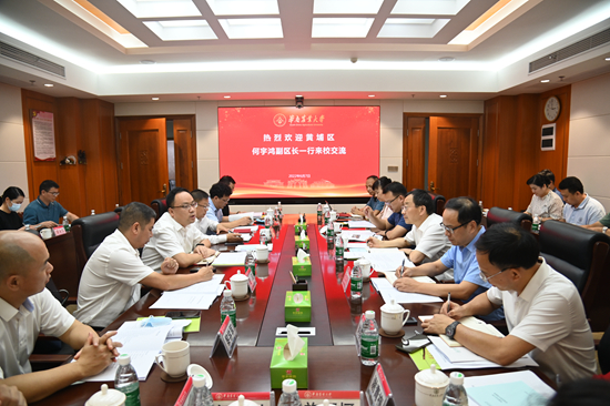 6月7日下午,黄埔区副区长何宇鸿一行来我校交流,校党委书记王斌伟接待来宾并在行政楼七楼中会议室交流座谈。副校长仇荣亮参加座谈。
