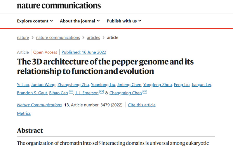 6月16日,我校园艺学院在著名学术期刊《Nature Communications》(5年影响因子15.8,中科院一区,TOP期刊)上发表题为“The 3D architecture of the pepper genome and its relationship to function and evolution” 的研究论文(论文链接: