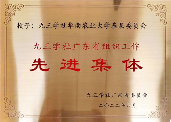 近日,为进一步推动组织工作高质量发展,九三学社广东省委表彰了一批在社组织工作中做出突出成绩的集体和个人。九三学社华南农业大学基层委员会(以下简称“九三学社华农基层委”)获得“九三学社广东组织工作先进集体”称号。数学与信息学院、软件学院院长黄琼,生命科学学院研究员侯学文,林学与风景园林学院副教授林元震等三名社员获得“九三学社广东省组织工作先进个人”称号。