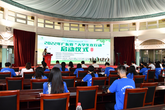 7月4日上午,2022年广东省“大学生在行动”启动仪式在我校红满堂举行。本次启动仪式由广东省环境科学学会主办,我校承办,来自中国环境科学学会、广东省生态环境厅、共青团广东省委员会、中山大学、广东工业大学等单位40余位代表参加活动。我校副校长仇荣亮出席活动并致辞。