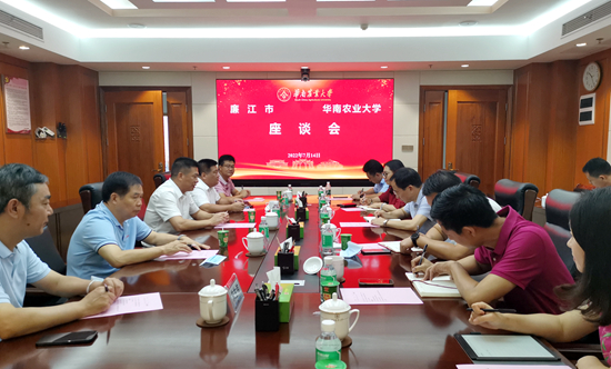 7月14日上午,廉江市委书记陈恩才一行来访我校,校党委书记王斌伟在行政楼七楼中会议室接待了来宾。双方围绕乡村振兴示范带建设和产业园申报等内容座谈交流。