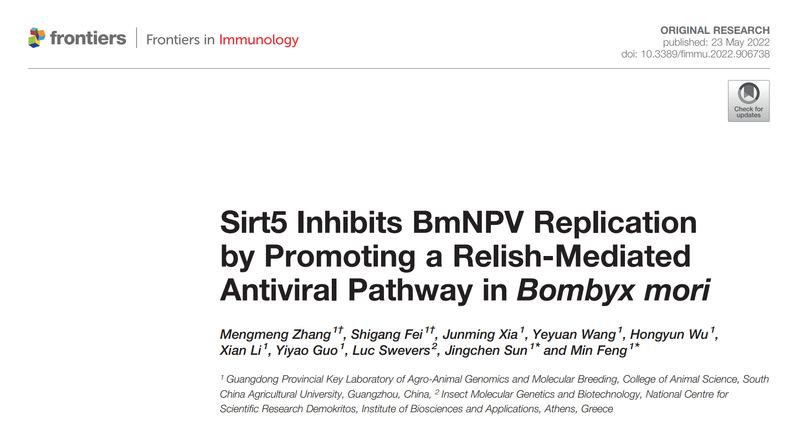 动物科学学院冯敏副研究员、Luc Swevers博士和孙京臣教授为论文通讯作者。该研究得到国家自然科学基金、广东省自然科学基金、广州市基础研究计划基础与应用基础研究项目和广东省大学生创新创业培训计划等项目的支持。