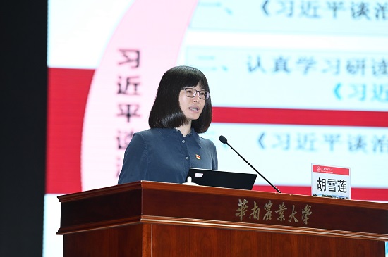 专题辅导报告结束后,学校党委理论学习中心组进行了集中学习研讨。校党委副书记、纪委书记、广东省监委驻华南农业大学监察专员陈少雄,党委副书记邓国安分别结合分管工作作了主旨发言,校党委理论学习中心组其他成员作了交流发言,马克思主义学院院长张丰清作了主题发言。