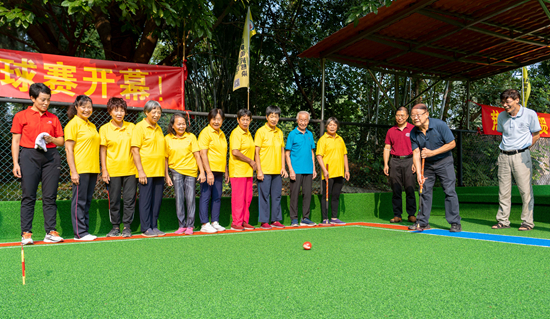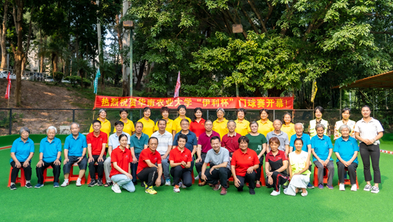 仪式后,2022年华南农业大学“伊利杯”门球赛在新门球场举行,蒋育燕和骆世明为比赛开球。