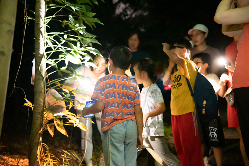 观察大自然是一种智慧,对孩子来说是最好的教科书。为了鼓励大家走进自然,观察自然,记录自然。9月17日,农博馆组织开展树木园夜观活动,带领孩子们探索夜间精灵。本次夜观活动由自然导师“蚂蚁老师”和“卡拉老师”带队近距离观察小昆虫,沉浸式体验植物界,不仅进一步增强了孩子们对植物和昆虫等知识的了解,还激发了大家对自然科学的兴趣 。