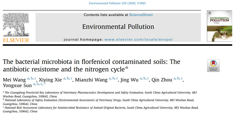 2020年团队采用宏基因组学技术,首次关联氮素循环解析了抗生素污染土壤中微生物群落的耐药组分布规律,揭示了抗生素引入环境后诱发的耐药风险可伴随氮代谢途径扩散,为控制耐药基因经环境传播提供了理论依据。相关论文“The bacterial microbiota in florfenicol contaminated soils: The antibiotic resistome and the nitrogen cycle”在国际期刊Environmental Pollution上发表(https://doi.org/10.1016/j.envpol.2019.113901)。