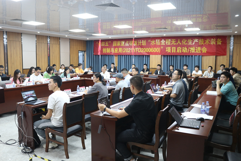 据悉,“水稻全程无人化生产技术装备创制与应用”项目为“十四五”国家重点研发计划“工厂化农业关键技术与智能农机装备”重点专项首批启动的项目之一。该项目由我校牵头,联合中国农业机械化科学研究院集团有限公司、潍柴雷沃智慧农业科技股份有限公司、北京市农林科学院智能装备技术研究中心、上海联适导航技术股份有限公司、上海交通大学、中国农业大学、东北农业大学、安徽中科智能感知产业技术研究院有限公司、广州极飞科技股份有限公司等10家单位共同攻关,开展水稻无人化作业智能感知技术与装置研发、水田作业机械自主驾驶与精准作业控制技术与系统研发、水稻全程无人化生产智能装备创制、水稻全程无人化农场生产云管控平台研发、水稻无人化生产模式与技术集成应用等5个课题方向的研究。