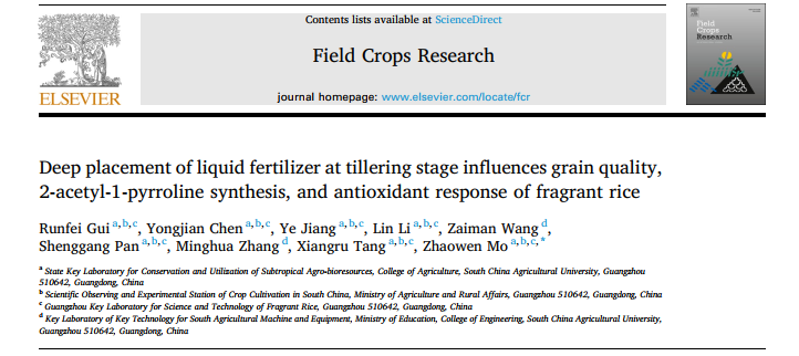 近日,农学院唐湘如教授团队在施肥技术调控香稻产量和香气研究方面取得新进展,并在农林科学权威期刊发表了学术论文。