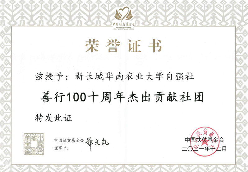 近日,由中国乡村发展基金会(原中国扶贫基金会)主办的“向善而行 共建美好”善行100公益活动十周年工作总结会在北京举行。我校获评“善行100十周年杰出贡献高校”,李敏、李丹莹获评“善行100十周年优秀指导老师”,我校自强社获评“善行100十周年杰出贡献社团”。