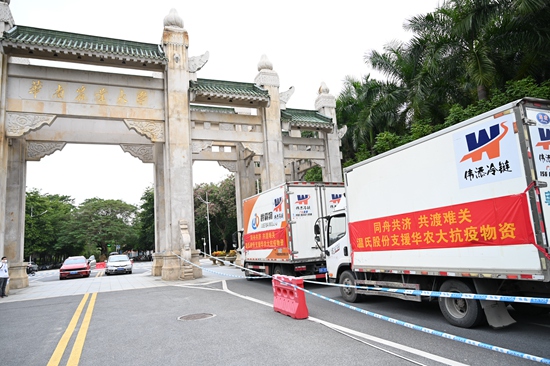 华农校友会、教育发展基金会秘书长张阳武表示,温氏集团作为校友企业,长期以来一直大力支持学校教育事业发展。学校发生疫情后,温志芬董事长立即指示集团做好支援母校疫情防控方案,连夜准备鸡、肉、牛奶、预制菜等一大批食品,让全校师生都感受到温氏的温度、力度,真正做到了“华农、温氏一家亲”。张阳武说,“作为校友会秘书长,非常感谢温氏集团的大力支持!”华农师生也纷纷在朋友圈转发点赞,表示感谢。