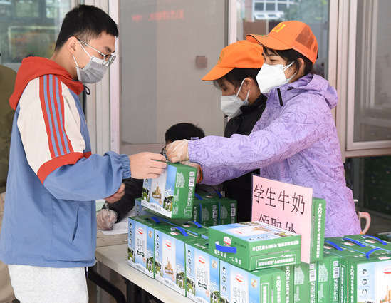 这批“大礼包”中,仅纯牛奶就有7万箱,覆盖华农全体师生员工。据总务部相关负责人介绍,他们发动了部门机关及饮食服务中心大部分工作人员,还请来学校施工单位和学生志愿者,一起“接力”卸货。全体学生可凭总务部派发的物资券到就近的楼栋值班台或食堂领取1箱(12支装)牛奶,已经离校的学生下学期返校后也可凭券到指定地点领取。熟食、预制菜则直接运抵各大食堂由食堂加工后免费派送给师生。