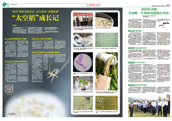 校报版面作品《“奔月”水稻安家华农 助力端牢“中国饭碗”:“太空稻”成长记》