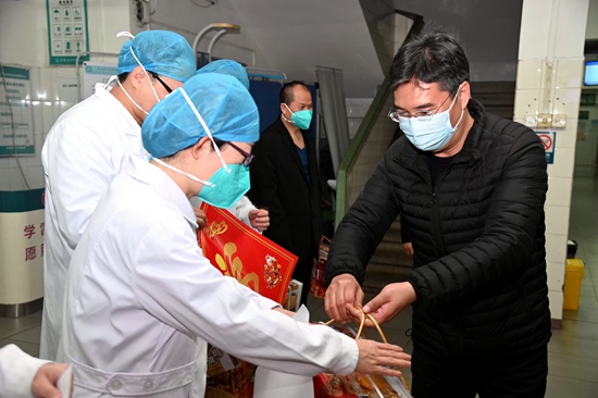 过小年,迎大年。1月14日晚,校党委常委、副校长钟强走访慰问寒假在岗的一线工作人员,代表学校向他们致以新春祝福,并送上节日慰问。