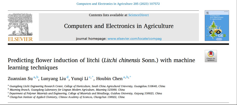 近日,我校园艺学院、岭南现代农业科学与技术广东省实验室茂名分中心、广东省荔枝工程研究中心陈厚彬研究员团队应用机器学习技术准确预测了荔枝成花诱导期时长,并筛选出影响荔枝成花诱导期的重要生态和生理因素,相关研究成果发表在农林科学领域知名期刊《Computers and Electronics in Agriculture》(中科院1区Top期刊,影响因子6.757),题目为“Predicting flower induction of litchi (Litchi chinensis Sonn.) with machine learning techniques”(链接:https://authors.elsevier.com/c/1gPmjcFCSTfRe)