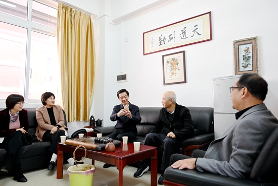 交谈中,张少康代表九三学社广东省委对刘耀光院士积极履职尽责,围绕广东省百县千镇万村高质量发展工程、科技服务乡村振兴方面开展科学研究,支持九三学社各项工作开展等表示衷心地感谢,并致以新春的问候。刘雅红代表学校向刘耀光院士送上新年祝福,了解他在科研、生活、健康等方面的情况,并对他为学校事业发展作出的突出成绩表示感谢。