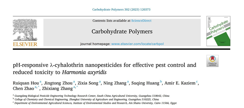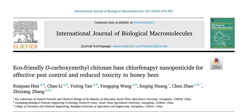近日,我校植物保护学院、天然农药与化学生物学教育部重点实验室、广东省生物农药工程技术研究中心徐汉虹教授/张志祥教授团队在国际化工领域的权威期刊Chemical Engineering Journal(工程技术1区top期刊,影响因子16.74)发表题为“A β-cyclodextrin-functionalized metal–organic framework enhances the insecticidal activity of indoxacarb by affecting amino acid metabolism in red imported fire ants”的科研论文(论文链接:https://doi.org/10.1016/j.cej.2023.141417)。论文第一单位为华南农业大学,我校2022级博士研究生杨留鹏为论文第一作者,我校植物保护学院张志祥教授和徐汉虹教授为通讯作者。这是该团队近期发表的第5篇关于纳米农药害虫控制和纳米制剂安全性评价方面的研究论文。其它相关研究成果发表在国际知名期刊《Carbohydrate Polymers 》(中科院1区Top,影响因子 10.72)、《Environmental Research》(中科院2区Top,影响因子8.43)和《International Journal of Biological Macromolecules》(中科院1区Top,影响因子8.03)上。上述论文反映了团队近期围绕纳米农药害虫控制和纳米制剂安全性评价方面取得的系列研究进展。