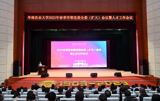 新学期伊始,如何乘着中国式现代化新征程的东风,以“开局就冲刺、起步就争先”的精气神,奋力跑出高质量发展的华农“加速度”?2月22日,华南农业大学在丁颖礼堂召开党委全委(扩大)会议暨人才工作会议,校党委副书记、校长刘雅红主持大会并作工作报告,对2023年重点工作进行部署。作为“新学期第一会”,大会还聚焦学校人才队伍建设,提出将坚定不移实施人才强校战略,加快出台“1+3”人才工作文件、推进实施人才队伍建设“六大工程”,为学校推进“双一流”建设、实现高质量内涵式发展提供坚强的人才支撑。