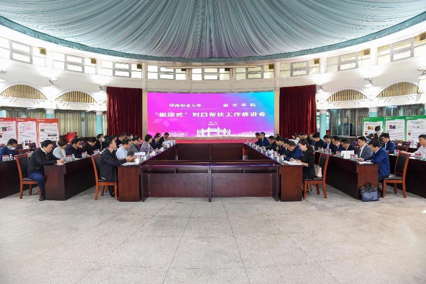 韶关学院党委书记孔云龙、校长廖益对我校一直以来给予的大力帮助和鼎力支持表示感谢,并希望进一步深化与我校的对接合作,积极推动对口帮扶工作向纵深发展,按照突出重点兼顾全面的工作思路,聚焦“申硕”工程、高层次人才引进等重点工作,全面落实帮扶任务清单,推进韶关学院新一轮高质量发展。