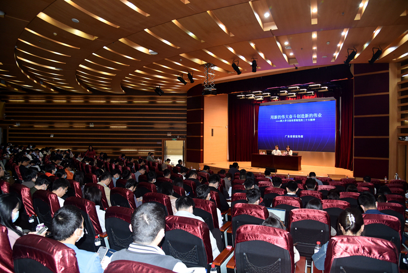 会议邀请了广东省委宣传部二级巡视员冯永忠作题为《用新的伟大奋斗创造新的伟业——深入学习宣传贯彻党的二十大精神》的专题辅导报告。各学院党委副书记、一线辅导员,学业辅导员和班主任代表,党委学生工作部(党委研究生工作部)全体成员近300人参加了会议。