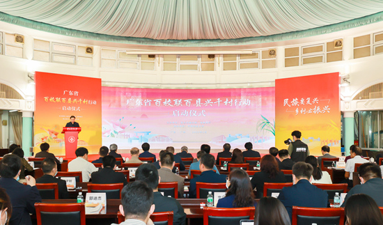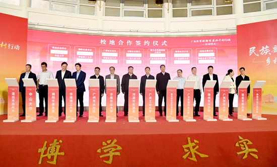 国家乡村建设高校联盟特聘专家出席启动仪式,省教育厅、省农业农村厅及4位校地代表分别发言,启动仪式还为7所高校“百校联百县兴千村”行动工作队授旗,广州市从化区、河源市东源县、揭阳市惠来县、梅州兴宁市、清远连州市、佛冈县、韶关市乳源县负责同志分别与中山大学、华南理工大学、华南农业大学、广东工业大学、广东外语外贸大学、广东财经大学、仲恺农业工程学院7所高校签约。