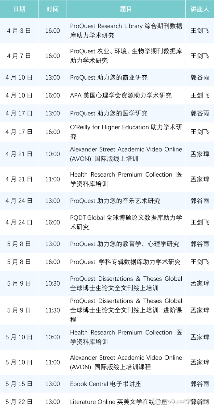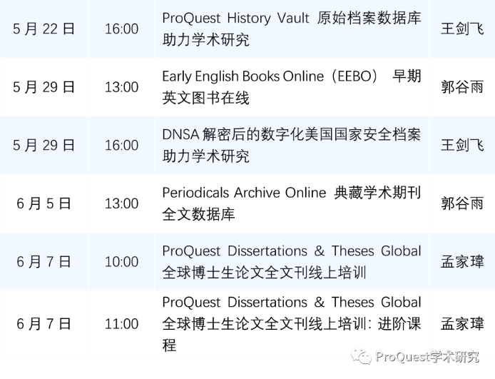图书馆在线培训:ProQuest网络课堂”2023年春季课程