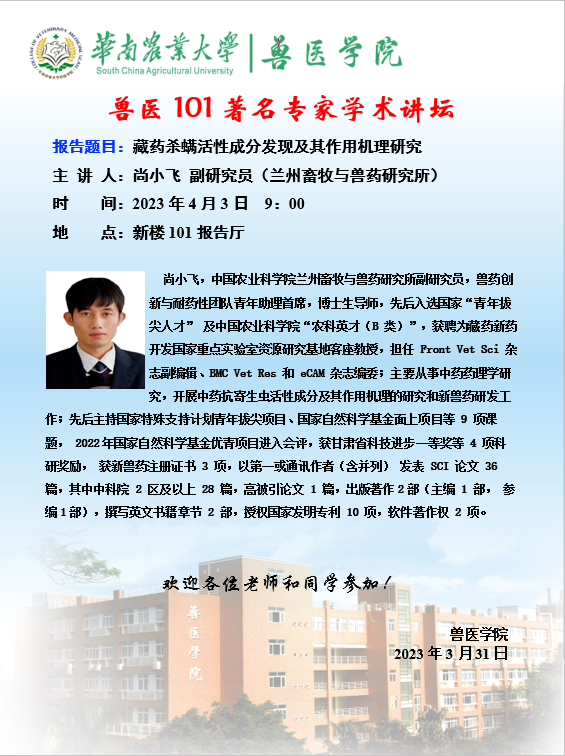 兽医101著名专家学术讲坛--藏药杀螨活性成分发现及其作用机理研究