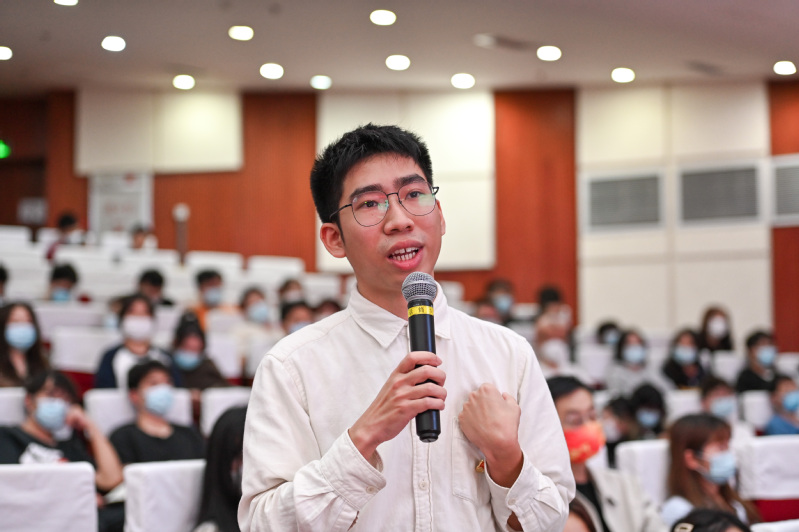 “作为新时代华农学子,同学们应该如何贯彻落实党的二十大精神,在中国式现代化的新征程上找准青春定位?”刘雅红结合华农历史名人和华农学子的典型案例,向同学们提出了四点希望。一要树立崇高理想,立志强农兴农。华农学子要志存高远、胸怀天下,牢记强农兴农使命,勇担科技强农兴农重任,把个人的成长进步融入到推动国家发展、民族振兴的时代洪流中。二要赓续红色血脉,厚植家国情怀。华农学子要以黄昌贤、冯淇辉、卢永根等老一辈华农人为榜样,传承好红色基因,赓续好红色血脉,始终与时代同呼吸,与祖国共命运。三要练就过硬本领,勇攀科技高峰。作为“三农”事业的接班人,华农学子要苦练内功,增强本领。既要敢于“上天”,抢占制高点,让科研之根扎得更深;又要勇于“入地”,走出象牙塔,把论文写在祖国的大地上。四要秉持务实精神,践行强农使命。华农学子要弘扬百年华农所积淀的艰苦奋斗、务实重本的优良传统,传承“笃学明德、躬行践履”的“丁颖精神”,脚踏实地,埋头苦干,敢想敢为,善作善成,让青春在农业现代化的火热实践中绽放绚丽之花。