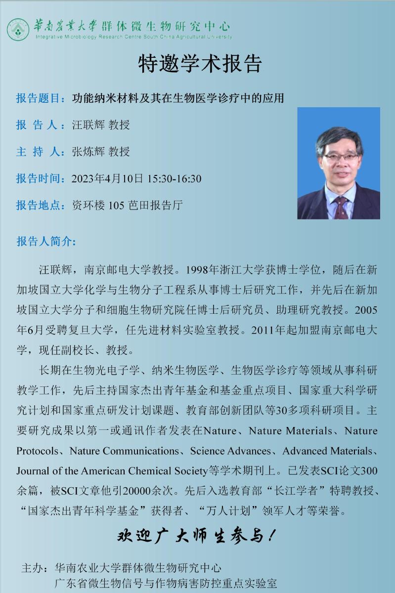 群微中心特邀学术报告:功能纳米材料及其在生物医学诊疗中的应用