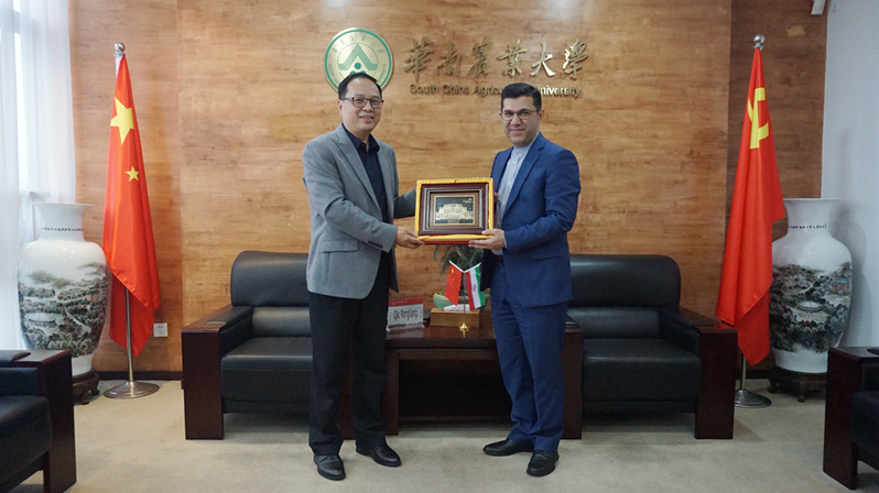 达瑞西总领事介绍了伊朗农业概况并提出了合作建议,同时还特别提到加强与区域合作机构如经济合作组织( Economic Cooperation Organization )合作的重要性。他表示,中伊农业合作具有天然互补优势,华南农业大学办学实力雄厚,农业科研优势突出,希望能进一步推动伊朗同行与华南农业大学开展产学研合作,共同助力中伊农业商贸发展。