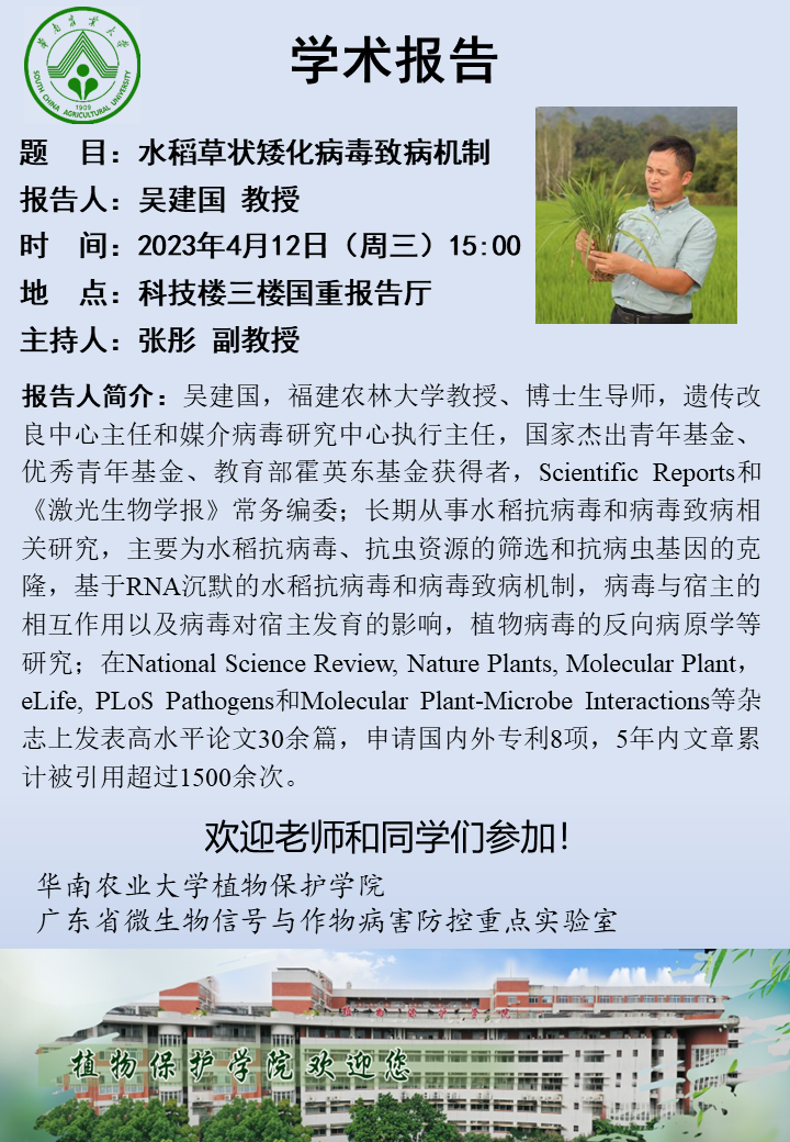 植保名家论坛第12期:水稻草状矮化病毒致病机制