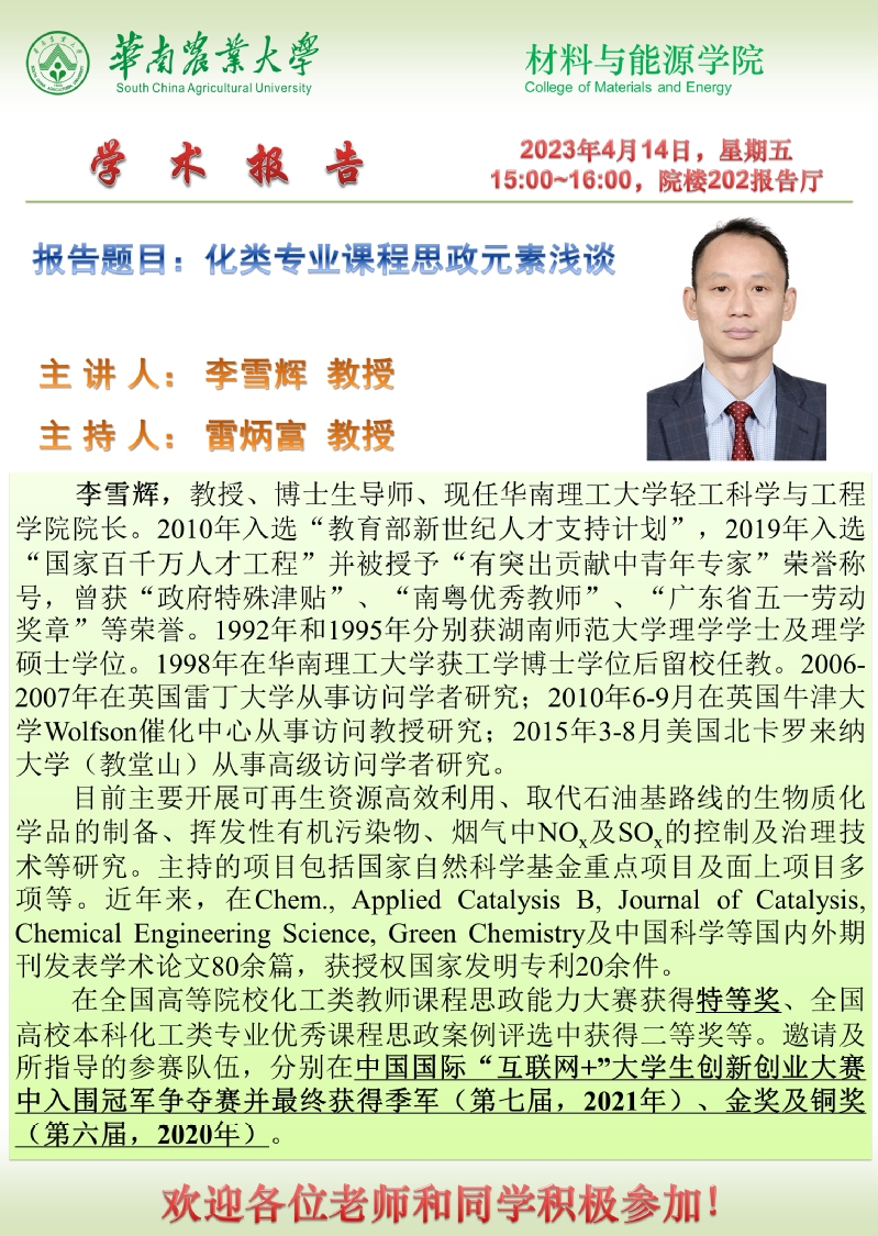 115周年校庆“学术华农”系列活动之0472: 材能学院学术报告:Mat...