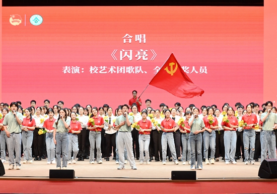 文艺表演同样精彩纷呈。“我爱你中国,心爱的母亲……”一曲《我爱你中国》拉开大会帷幕,校合唱团男女声部相互配合,用悠扬的歌声与极富韵律的鼓点,抓住现场观众的心。由校艺术团司仪队联合各学院司仪队的同学们带来的情景朗诵节目《使命担当,强国有我》,融合音乐、诗歌、沙画等多种表现形式,让历史的星河与时代的画卷交相辉映,将大会的气氛推向高潮。终场环节,校歌队与获奖同学代表共同演唱曲目《闪亮》,用激昂的歌声为本次大会画上圆满句号。