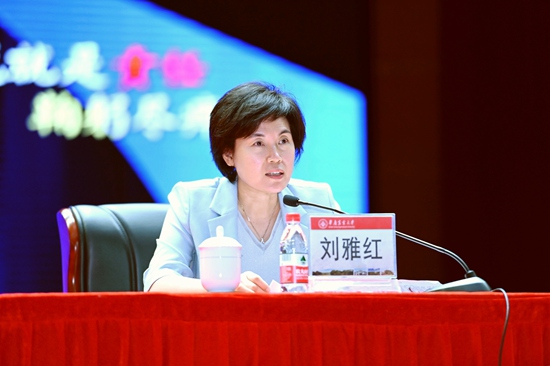 为持续推进学习贯彻习近平新时代中国特色社会主义思想主题教育走深走实,5月16日下午,我校在丁颖礼堂举办主题教育读书班暨党委理论学习中心组(扩大)学习会,邀请中共广东省委党史研究室主任杨建伟作专题辅导报告。学校党委副书记、校长刘雅红主持学习会并讲话。