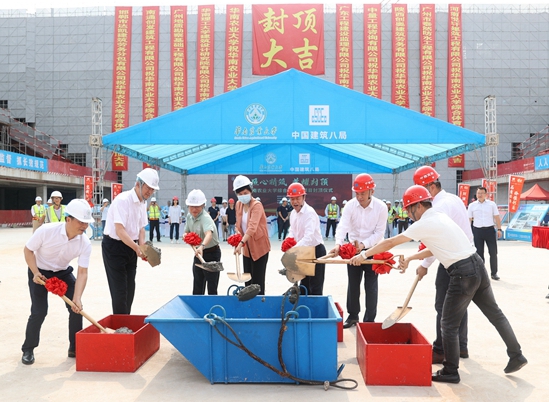校长刘雅红,副校长温小波、杨运东、钟强,中建八局华南分局党委书记、副局长郭青松,中建八局二公司广东公司党总支书记、执行总经理张宁,总会计师、工会主席李军,副经理滕少坤等出席封顶仪式。