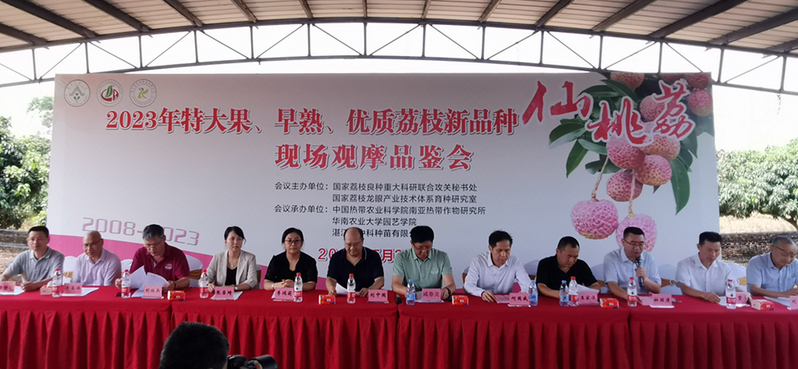 5月21日,由我校主办,国家荔枝良种重大科研联合攻关秘书处、中国热带农业科学院南亚热带作物研究所承办的“2023年特大果、早熟、优质荔枝新品种‘仙桃荔’现场观摩品鉴会”在湛江市徐闻县召开。会议由中国热带农业科学院南亚热带作物研究所所长杜丽清研究员主持,广东省农业农村厅二级巡视员何国威、我校副校长咸春龙出席会议。