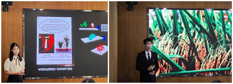 为帮助师生深入了解农博馆展品与农博文化,农博馆举办了第二届“小穗杯”科普讲解比赛,该比赛以“讲好农博故事,传播华农声音”为主题。经过遴选,有10位优秀选手入围决赛,决赛现场,选手们声情并茂地讲解农博故事,赢得阵阵掌声。最终,张祉晴同学作品《检测“天选之种”的神秘装置——核径迹板》荣获比赛一等奖,易雅卓欣同学作品《“奇特的翻车鱼”》获得“最佳人气奖”。