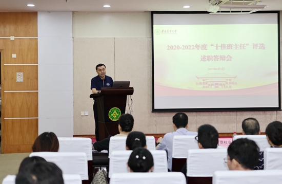 在述职答辩环节中,来自各学院的21位候选人结合各自工作实际,阐释了班主任工作的思路和做法,介绍了班级管理的亮点和特色,展示了班主任工作的内容和成果,分享了做好班主任工作的体会和感悟,交流了班级管理的典型案例和有益经验。