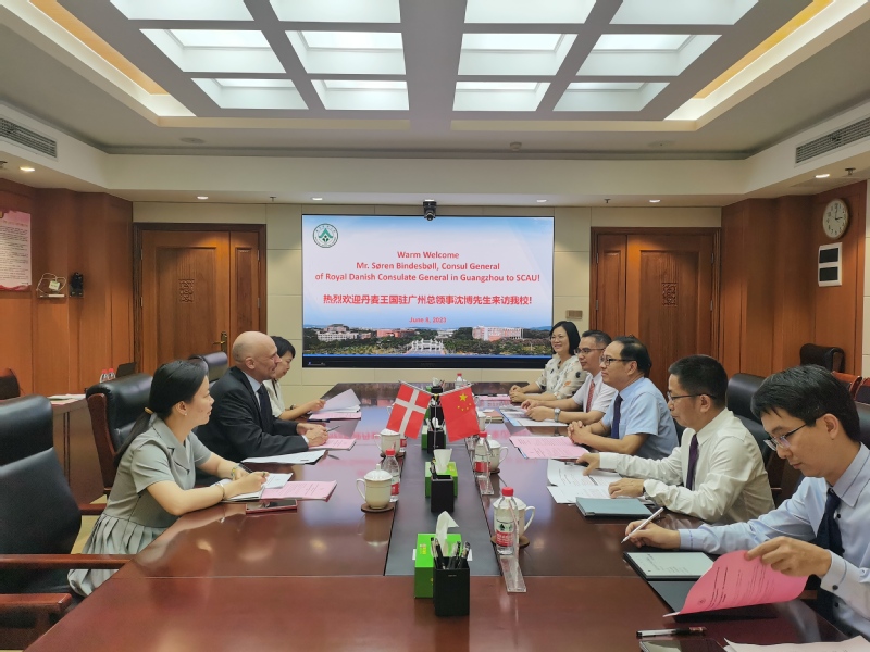 6月8日下午,丹麦王国驻穗总领事沈博(Søren Bindesbøll)先生一行来访我校,我校副校长仇荣亮热情接待了来宾,双方就开展畜牧业等农业领域的合作进行了深入交流。
