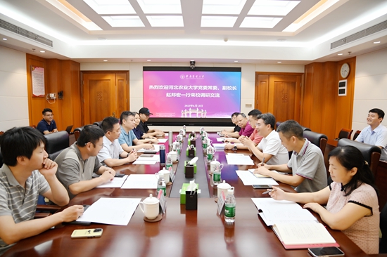 6月13日,河北农业大学党委常委、副校长赵邦宏一行来访我校,我校党委常委、副校长钟强接待来宾并在行政楼七楼中会议室座谈交流。