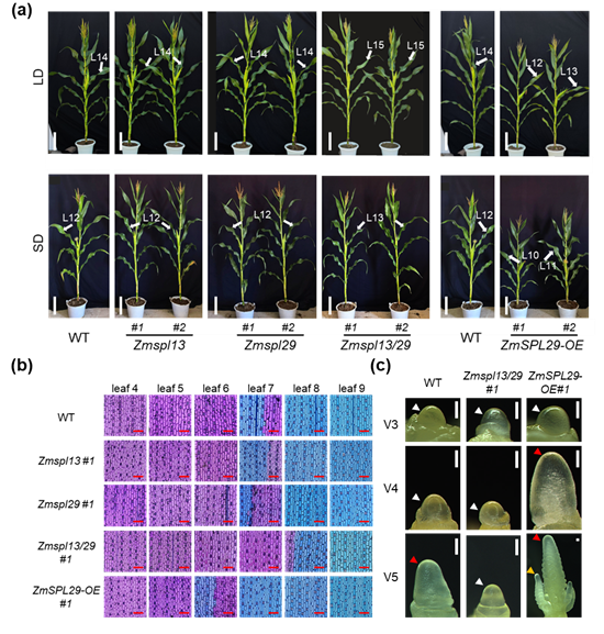 图1:ZmSPL13/29正调节玉米营养生长时相转变和成花转变