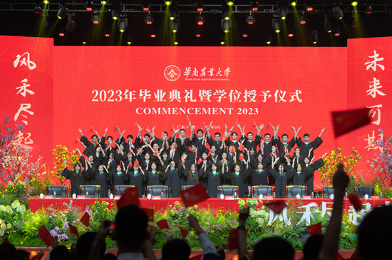 6月27日,华南农业大学2023年毕业典礼暨学位授予仪式在丁颖礼堂举行,并同步在学校官方视频号直播。繁花舞台、毕业短片、合唱表演、拨穗正冠、颁授荣誉、合影留念……今年,华农为全体毕业生举行了一场温馨感人的“繁花中的毕业典礼”,为毕业生们送上美好祝福。