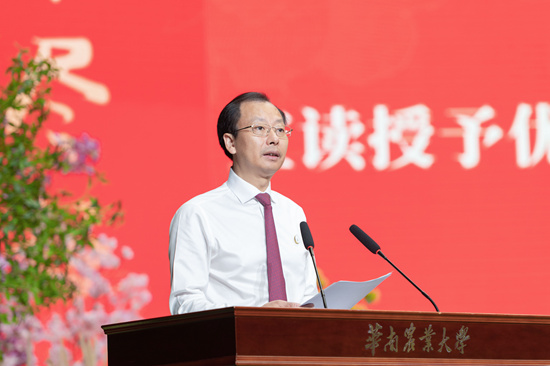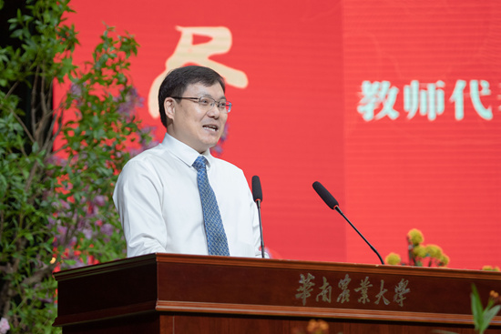 “同学们,老师可能是这个世上虽然与你们没有任何血缘关系,但始终会牵挂你们平安和幸福的人。临行前,我想以师兄和师长之谊寄语大家:感恩祖国、感恩母校、感恩父母。”国家杰出青年基金获得者、生命科学学院院长王应祥教授以“饮水思源,方能行远”为题作教师代表发言,勉励同学们要常怀感恩之心,赓续丁颖精神、秉持求实作风、勇于开拓创新,发扬华农人的优秀品质,推动社会进步和人类文明的不断发展。