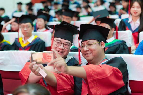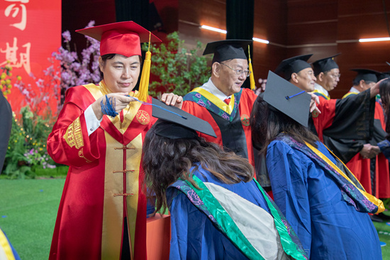 根据工作安排,2023届毕业生学位授予仪式从6月27日上午开始,一直持续到6月28日中午,共举行8个场次,由校长刘雅红和校学位评定委员会委员为六千余名毕业研究生和本科生代表授予学位并逐一拨穗。