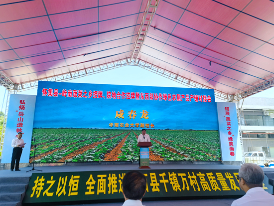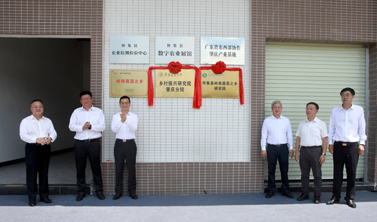 为进一步推动校地合作落地,助力高质量发展,7月28日,副校长咸春龙应邀出席肇庆怀集县“岭南蔬菜之乡”授牌、院地合作挂牌暨东西部协作绿色农副产品产销对接会,并与肇庆市委书记、市人大常委会主任张爱军,中国蔬菜流通协会常务副会长陈明均等领导共同为我校乡村振兴研究院肇庆分院挂牌。