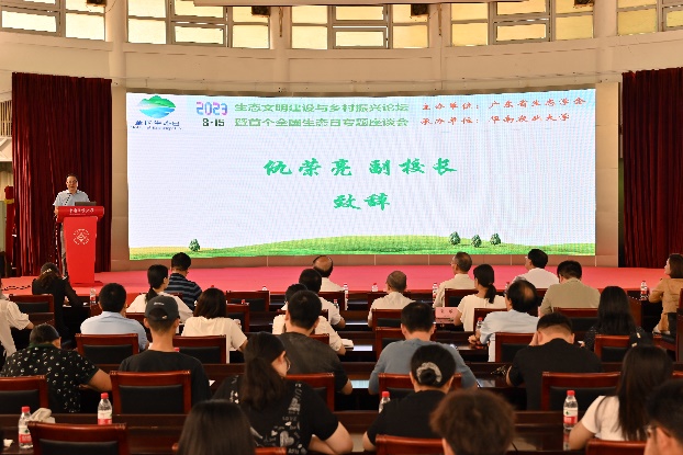815日,由广东省生态学会主办、我校承办的“生态文明建设与乡村振兴论坛暨首个全国生态日专题座谈会在我校红满堂举行。广东省内生态学及相关领域的专家学者、高校师生和企业家等方面代表100余人参加活动,共同交流分享在生态学领域研究的新成果,探讨绿水青山就是金山银山以及生态文明建设与乡村振兴等方面的理论与实践,迎接首个全国生态日的到来。我校副校长仇荣亮、原校长骆世明教授出席活动并致辞,论坛开幕式由广东省生态学会副理事长、我校资源环境学院章家恩教授主持。